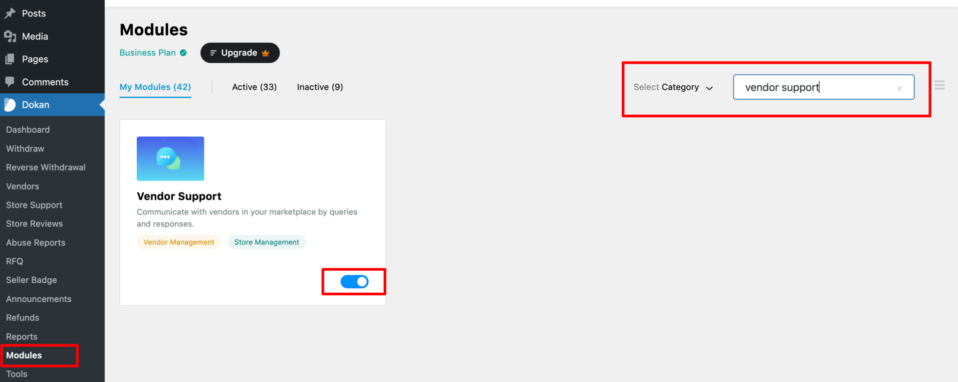 Once you’ve located the Vendor Support module, simply toggle it on.