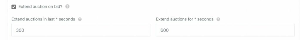 If you set it to 600 seconds (10 minutes), every last-minute bid will push the auction’s end time forward by 10 minutes.
