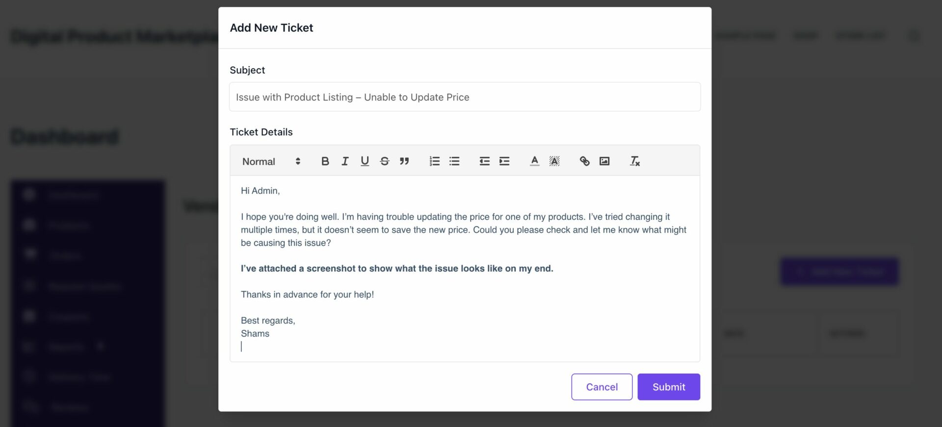 - Text Styling & Image Upload: The message editor comes with text styling options. You can format your text to make it more readable. You can also upload images directly within the message to provide more context to the admin, making it easier for them to understand your issue.